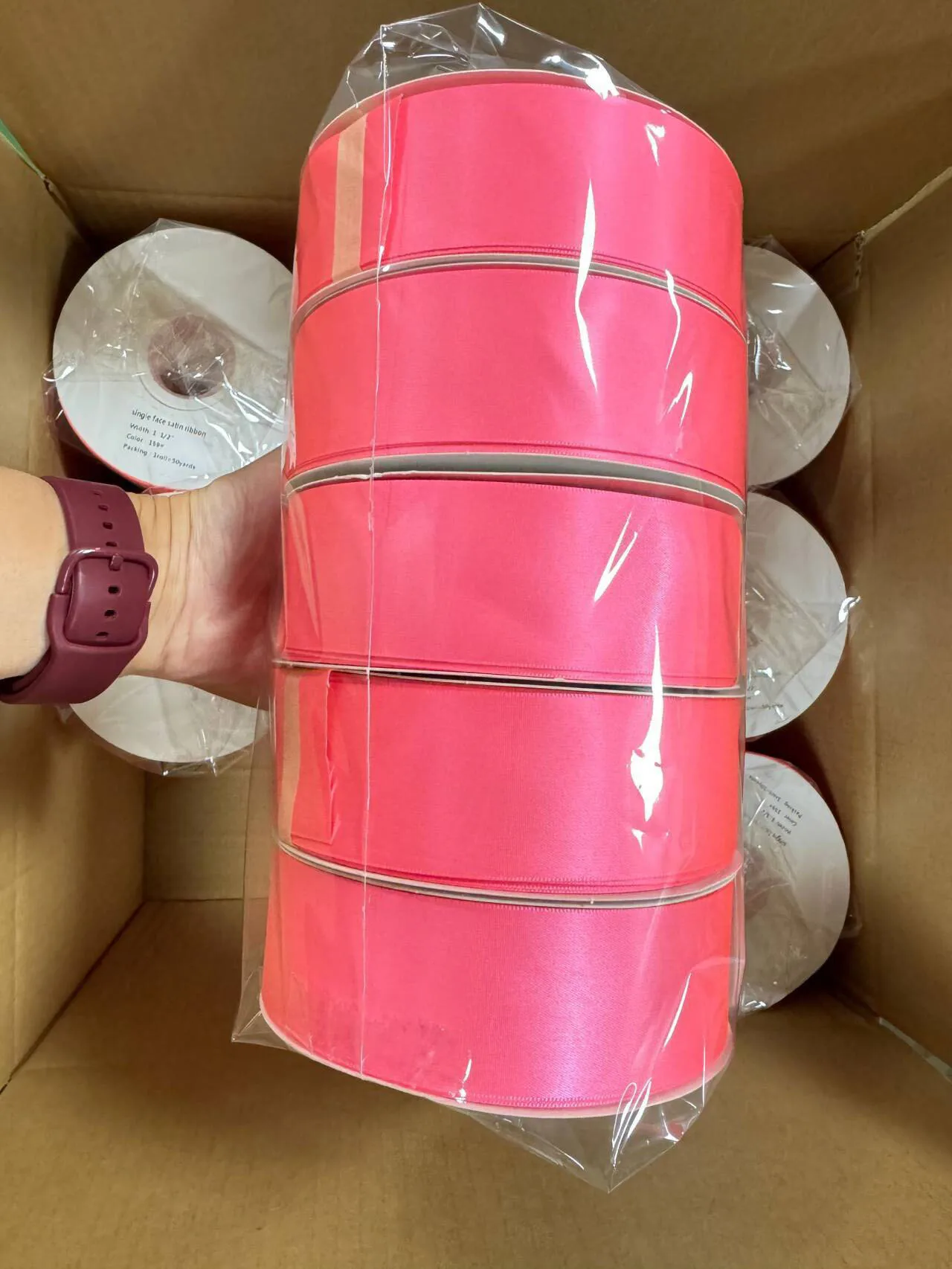 Dai uno sguardo alla nostra fabbrica! Questo è l'officina di tintura che utilizza materiali ecologici per colori più luminosi e duraturi. Ogni nastro è arrotolato e